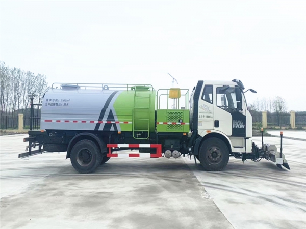 解放J6高壓清洗車是一種雙發動機、雙水泵清洗車,是在標準二類底盤的基礎上,加裝高壓沖洗系統、低壓沖洗系統,由機械、液壓(氣路)、電器三部分合為一體的專用沖洗作業車。本車具有獨立的高、低壓兩套水路系統,為清洗車工作提供壓力水源。其工作原理是:利用高壓水泵產生的高壓水,經噴水架的高壓噴嘴噴出,利用高壓水流的動能,以高壓力、低流量的方式進行清洗,強力去污,高效節水,能將路面的陳舊污漬清洗干凈;或高壓水經左(右)角噴噴出,清洗路緣、人行道及護欄隔離區;使用高壓噴槍還可清洗路標、廣告牌、高架路等;噴霧系統具有強大的噴霧降塵、噴撒空氣消毒劑及調節空氣濕度功能。