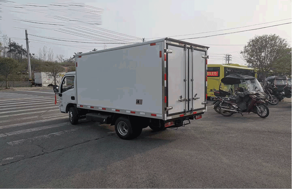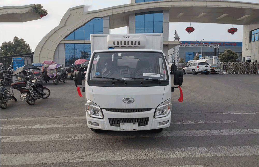 車廂配置:內外玻璃鋼板,中間聚氨酯保溫層.8CM箱體厚度,保溫性能達到國家A級標準,選裝國產或者進口機組-5或者 -15度;門框門鎖及鉸鏈為不銹鋼成型件,地板為鋁花紋板,
